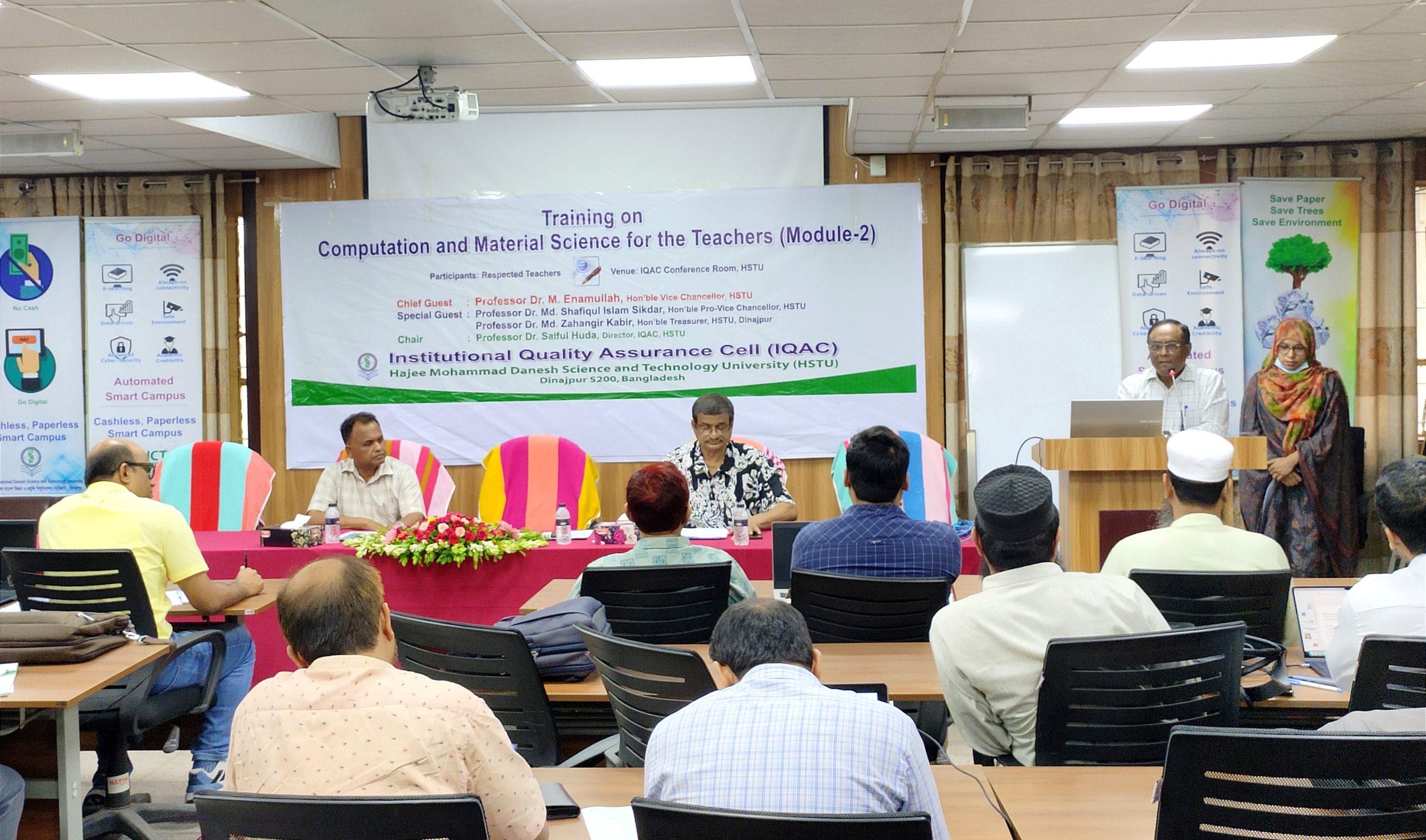 হাবিপ্রবি, দিনাজপুর: হাজী মোহাম্মদ দানেশ বিজ্ঞান ও প্রযুক্তি বিশ্ববিদ্যালয়ে (হাবিপ্রবি) ইনস্টিটিউশনাল কোয়ালিটি এস্যুরেন্স সেল (আইকিউএসি) এর ব্যবস্থাপনায় হাবিপ্রবির বিভিন্ন বিভাগের শিক্ষকবৃন্দ এবং বেগম রোকেয়া বিশ্ববিদ্যালয়ের (বেরোবি) রসায়ন বিভাগের বিভিন্ন পর্যায়ের শিক্ষকবৃন্দের জন্য “কম্পিউটেশন অ্যান্ড ম্যাটেরিয়াল সায়েন্স ফর দ্যা টিচার্স (মডিউল—২)” শীর্ষক দিনব্যাপী প্রশিক্ষণ কর্মশালা অনুষ্ঠিত হয়েছে।