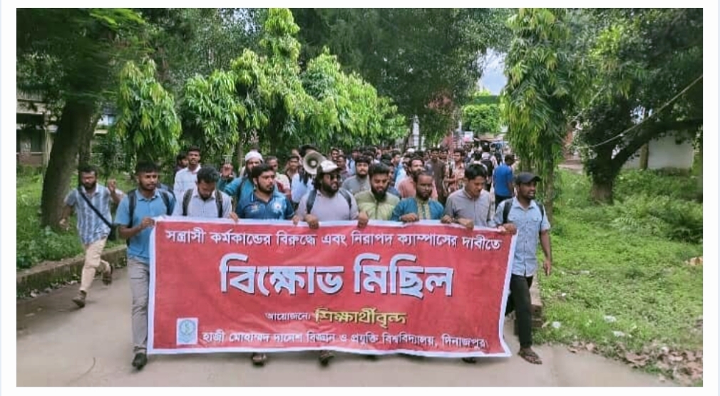 হাবিপ্রবি প্রতিনিধি: দিনাজপুরের হাজী মোহাম্মদ দানেশ বিজ্ঞান ও প্রযুক্তি বিশ্ববিদ্যালয়ে (হাবিপ্রবি) সন্ত্রাসী কর্মকাণ্ডের বিরুদ্ধে নিরাপদ ক্যাম্পাসের দাবিতে বিক্ষোভ মিছিল করেছে সাধারণ শিক্ষার্থীরা।