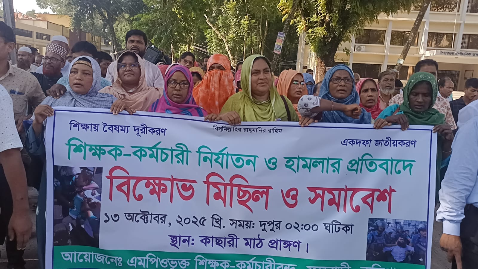 সোমবার (১৩ অক্টোবর) বেলা দুইটার সময় উপজেলার শত শত শিক্ষক কর্মচারীর অংশগ্রহণে একটি বিক্ষোভ মিছিল উপজেলা সদরের প্রধান প্রধান সড়ক প্রদক্ষিণ করে। এরপর উপজেলা পরিষদ চত্বরে সমাবেশ অনুষ্ঠিত হয়।
