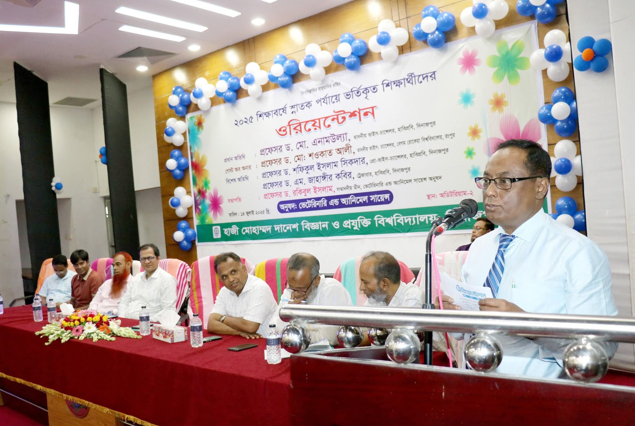 হাবিপ্রবি, দিনাজপুর: হাজী মোহাম্মদ দানেশ বিজ্ঞান ও প্রযুক্তি বিশ্ববিদ্যালয়ের (হাবিপ্রবি) ২০২৫ শিক্ষাবর্ষের স্নাতক পর্যায়ের লেভেল ১ সেমিস্টার ১ এ ভর্তিকৃত শিক্ষার্থীদের জন্য ৪ টি অনুষদের ওরিয়েন্টেশন কার্যক্রম অনুষ্ঠিত হয়েছে।