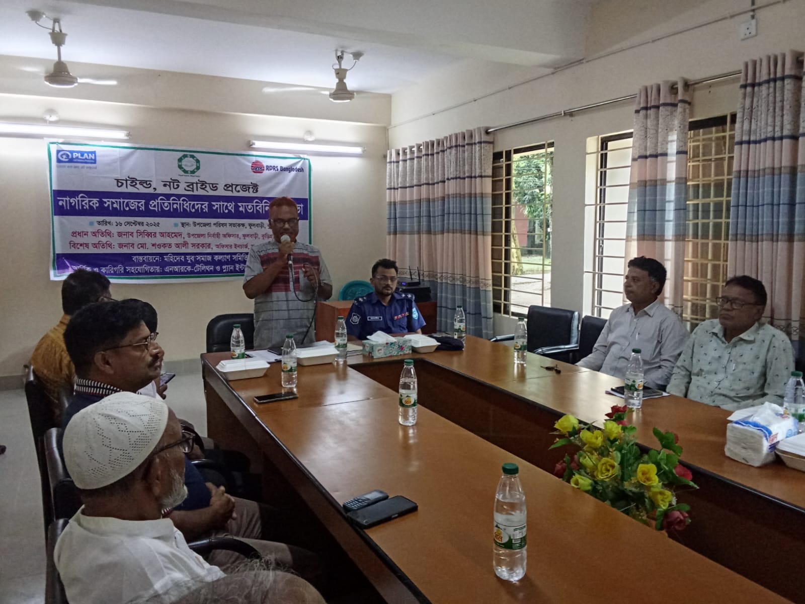 এনআরকে-টেলিথন ও প্লান ইন্টারন্যাশনাল বাংলাদেশ এর আর্থিক ও কারিগরি সহযোগিতায় অনুষ্ঠিত মতবিনিময় সভায় প্রধান অতিথি ছিলেন, উপজেলা নির্বাহী অফিসার (অ.দা.) সিব্বির আহমেদ। বিশেষ অতিথি ছিলেন, ফুলবাড়ী থানার অফিসার ইনচার্জ (ওসি) শওকত আলী সরকার।