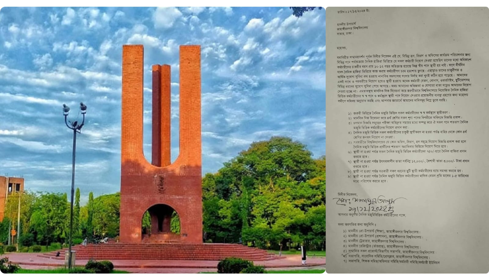 স্মারকলিপিতে কর্মচারীরা উল্লেখ করেন, “বিশ্ববিদ্যালয়ের বিভিন্ন হল, বিভাগ ও অফিসের কার্যক্রম পরিচালনার জন্য পর্যায়ক্রমে দৈনিক মজুরিভিত্তিতে নিয়োগপ্রাপ্ত বেশিরভাগ কর্মচারী ১০ থেকে ১২ বছর ধরে কাজ করছেন। কিন্তু এখনও তাদের চাকরি স্থায়ী হয়নি। ফলে দীর্ঘদিন ধরে অনিশ্চিত চাকরির পরিস্থিতিতে তারা হতাশায় ভুগছেন। পাশাপাশি চাকরির আর্থিক সুবিধা সীমিত হওয়ায় তাদের সংসার চালানো অত্যন্ত কঠিন হয়ে পড়েছে। অন্যদিকে, তাদের অভিজ্ঞতা ও যোগ্যতা থাকা সত্ত্বেও একই সময়ে নিয়োগ পাওয়া অনেক কর্মচারী স্থায়ী হওয়ার মাধ্যমে বেতন, বোনাস ও অন্যান্য সুযোগ-সুবিধা পাচ্ছেন। তাই মানবিক দিক বিবেচনা করে তাদের স্ব স্ব পদে স্থায়ী করার জন্য প্রয়োজনীয় ব্যবস্থা গ্রহণের অনুরোধ জানানো হচ্ছে।”