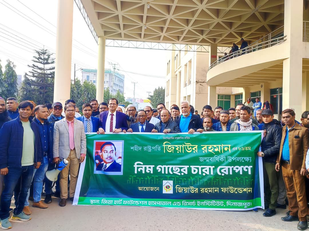 হাবিপ্রবি, দিনাজপুর: জিয়াউর রহমান ফাউন্ডেশন, দিনাজপুর এর উদ্যোগে শহীদ রাষ্ট্রপতি জিয়াউর রহমান বীর উত্তম এঁর ৮৯ তম জন্মবার্ষিকী উপলক্ষ্যে নিম গাছের চারা রোপণ কর্মসূচী পালিত হয়েছে।