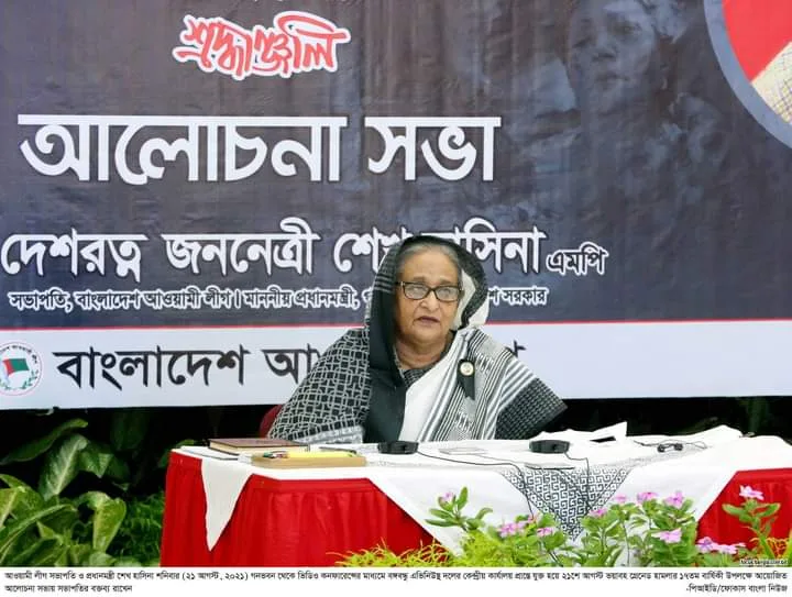 প্রধানমন্ত্রী এবং আওয়ামী লীগ সভাপতি শেখ হাসিনা আজ সকালে গ্রেনেড হামলার ১৭তম বার্ষিকী উপলক্ষে বাংলাদেশ আওয়ামী লীগ আয়োজিত আলোচনা সভায় সভাপতির ভাষণে এ কথা বলেন।