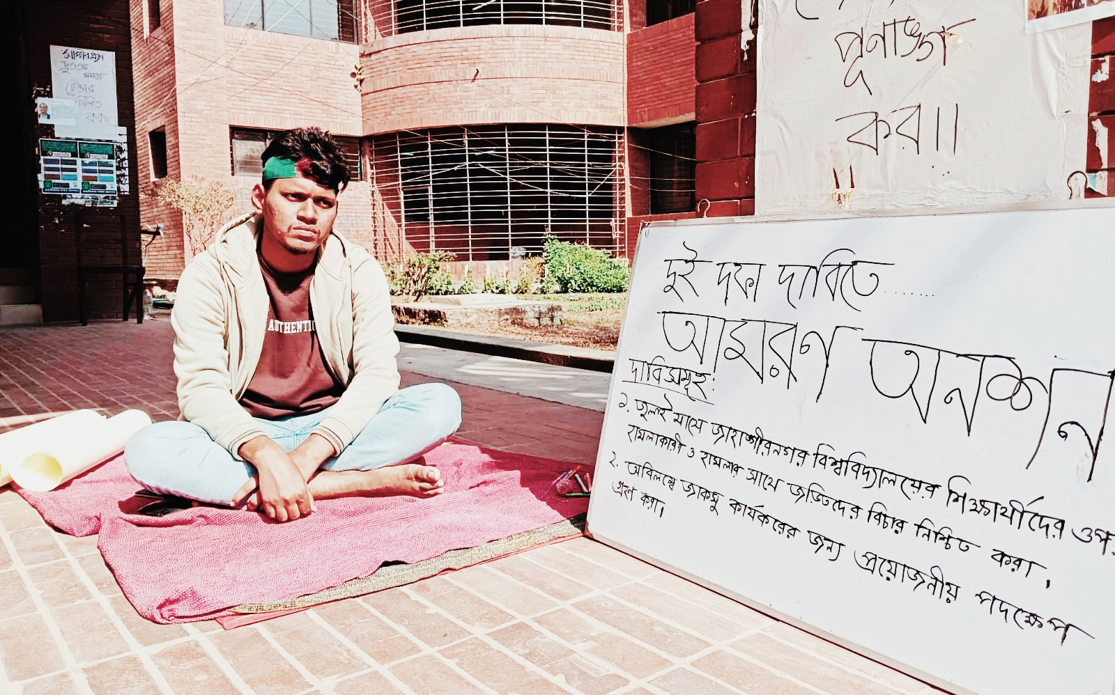 জুলাইয়ের গণআন্দোলনের সময় শিক্ষার্থীদের ওপর হামলাকারীদের বিচার এবং অবিলম্বে জাহাঙ্গীরনগর বিশ্ববিদ্যালয় ছাত্র সংসদ (জাকসু) কার্যকরের দাবিতে অনশনে বসেছেন বিশ্ববিদ্যালয়ের শিক্ষার্থী জিয়া উদ্দিন আয়ান।