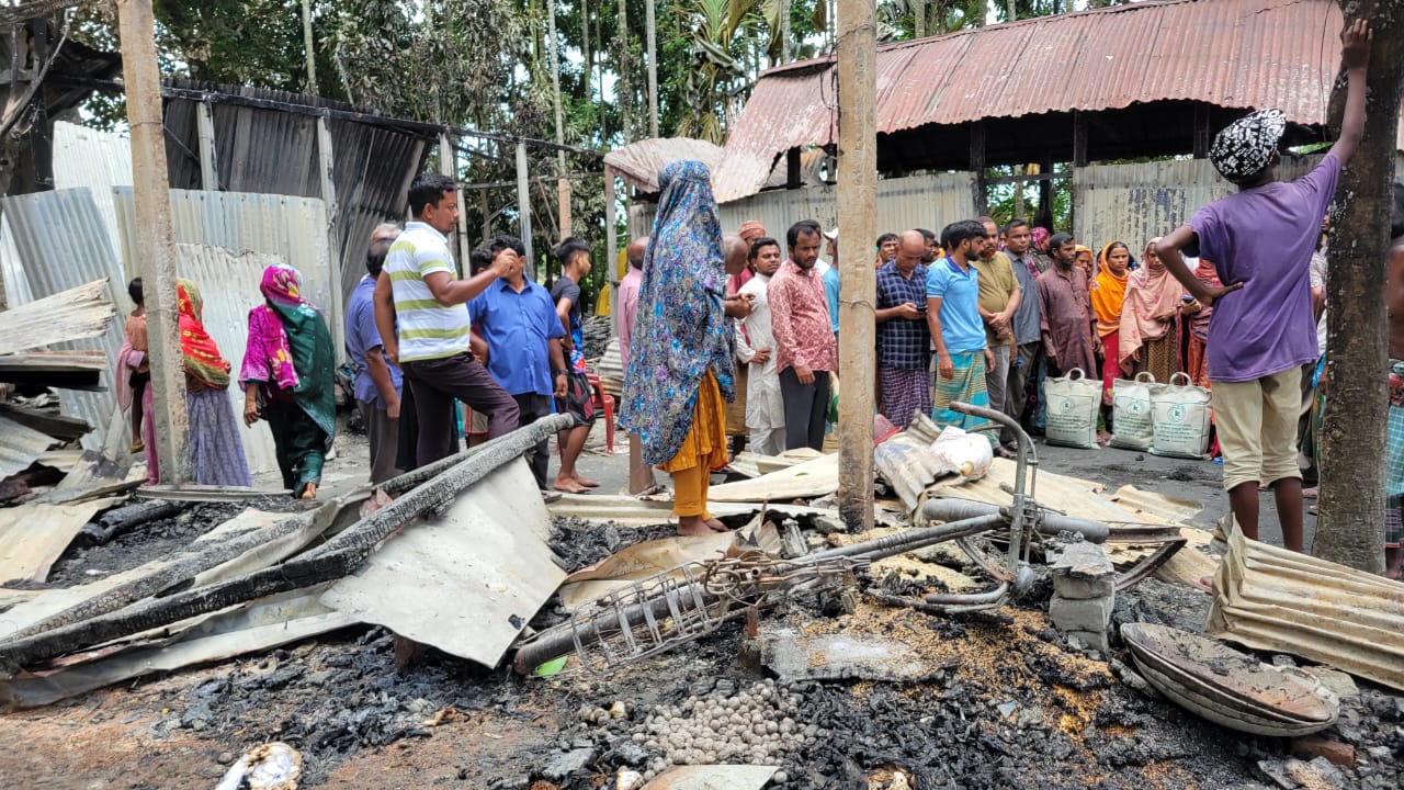 প্রত্যক্ষদর্শী ইকবাল হোসেন, একরামুল হক জানান, রাত ১২ টার দিকে বিদ্যুতের সটসার্কিট থেকে আগুনের সুত্রপাত হয়ে ওই গ্রামের জাহাঙ্গীর আলমের বাড়ীতে আগুন ছড়িয়ে পড়ে। আগুনের লেলিহান শিখা মুহুর্তের মধ্যে জাহাঙ্গীরের ছোটভাই জাহিদুল ইসলামের বাড়ীতেও ছড়িয়ে পরে। এক থেকে দেড় ঘন্টার মধ্যে আগুনে ওই দুই পরিবারের ৬ টি টিনের ঘর,৩ টি গরু, ৩ টি ছাগল, অর্ধশতাধিক হাঁসমুরগি, আসবাবপত্র, কাপড়চোপড়, বাইসাইকেল পুড়ে ছারখার হয়ে যায়। স্থানীয় লোকজন আপ্রাণ চেষ্টা করেও আগুন নেভাতে ব্যর্থ হন। পরে ফায়ার সার্ভিস এসে আগুন নিয়ন্ত্রণ করে। কিন্তু ততক্ষণে সবকিছু পুড়ে শেষ হয়ে যায়।
